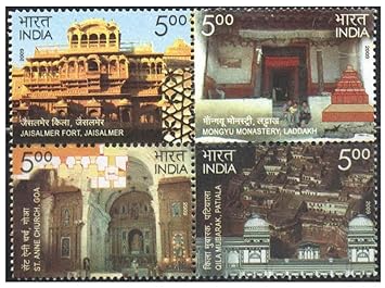 India Postage 2009 – Heritage Monuments Preservation by Intach – Se-Tenant Block of 4 Postage Stamps Mint Never Hinged