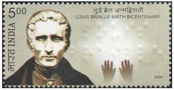 India Postage 2009 – Louis Braille (Inventor of Embossed Script for Visually Challenged People) Postage Stamp with Embossed Script – Mint Never Hinged