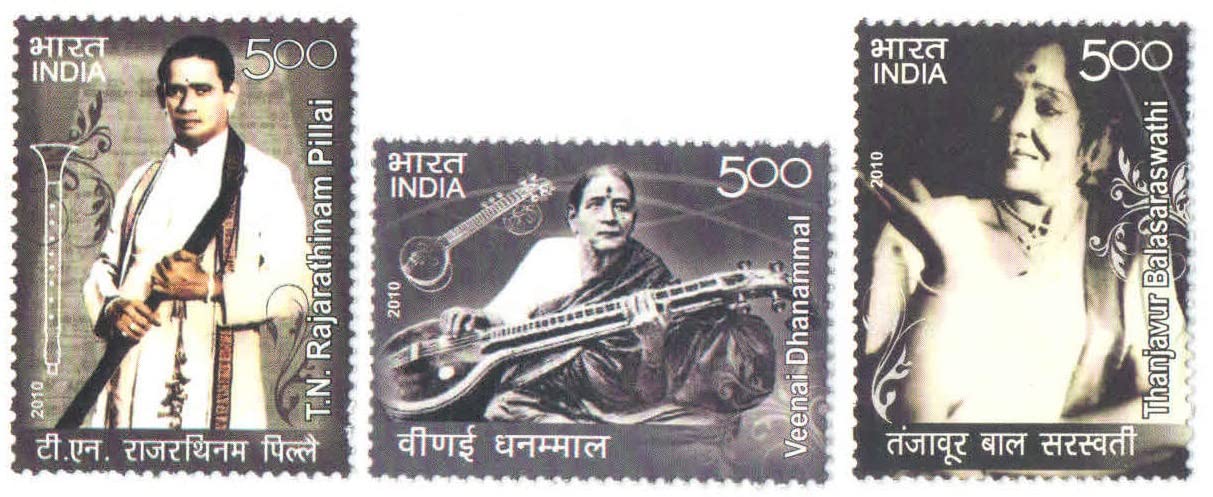 India Postage 2010 – Classical Musicians ( T.N. Rajarathinam Pillai – Veenai Dhanammal – Thanjavur Balasaraswathi ) Set of 3 Postage Stamps Mint Never Hinged