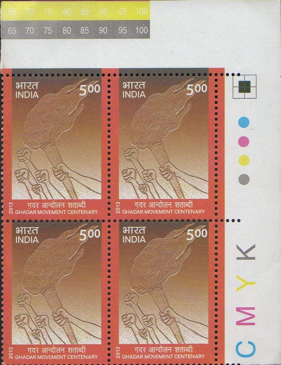 India Postage 2013 – Centenary of Ghadar Movement ( Gadar Movement ) – TL Block of 4 Postage Stamps Mint Never Hinged