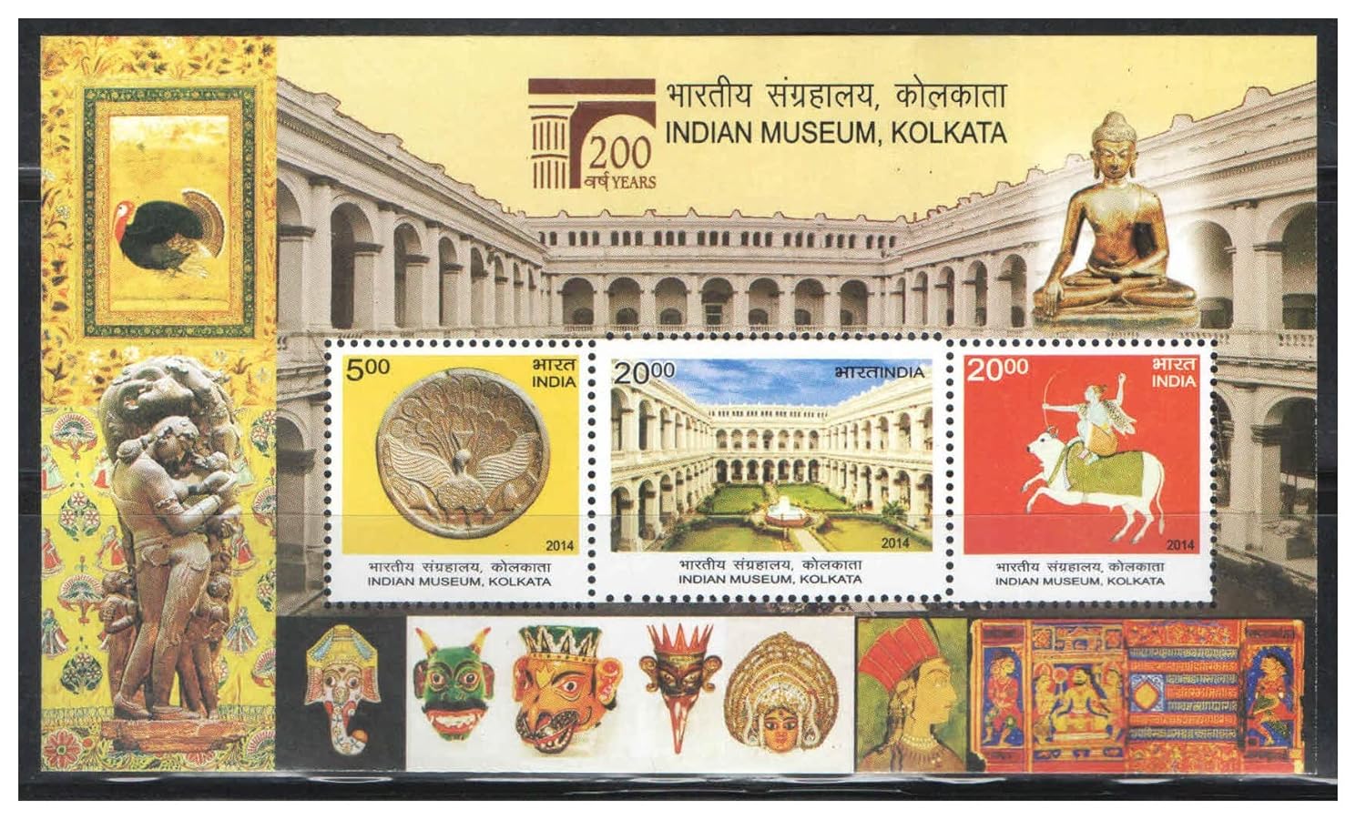 India Postage 2014 – Indian Museum Kolkata – Miniature Sheet ( MS ) of 3 Postage Stamps Mint Never Hinged
