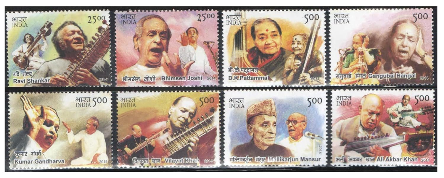 India Postage 2014 Indian Musicians – Set of 8 Postage Stamps – Mint Never Hinged