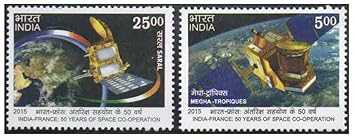 India Postage 2015 – India France 50 Years of Space Co-Operation – Set of 2 Postage Stamps Mint Never Hinged