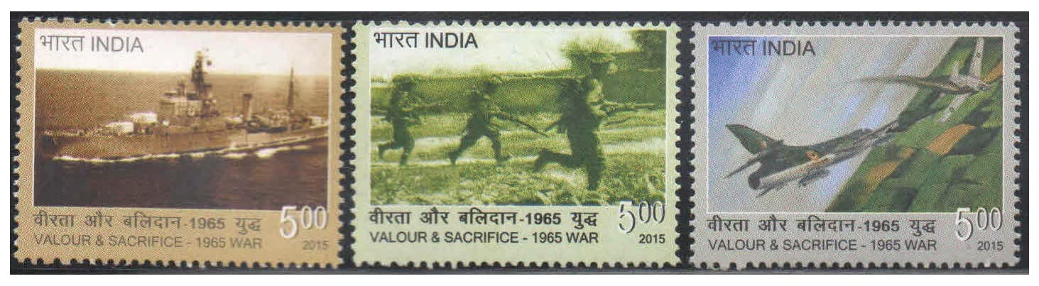 India Postage 2015 – Valour & Sacrifice 1965 War – Set of 3 Postage Stamps Mint Never Hinged