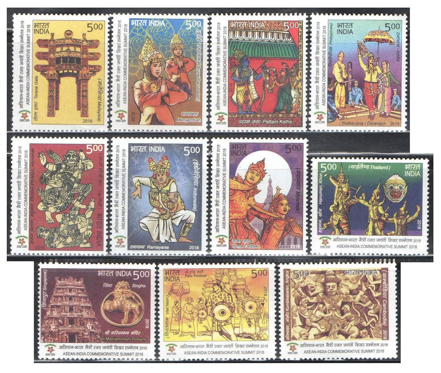 India Postage 2018 – ASEAN-India Commemorative Summit 2018 – Set of 11 Postage Stamps Mint Never Hinged