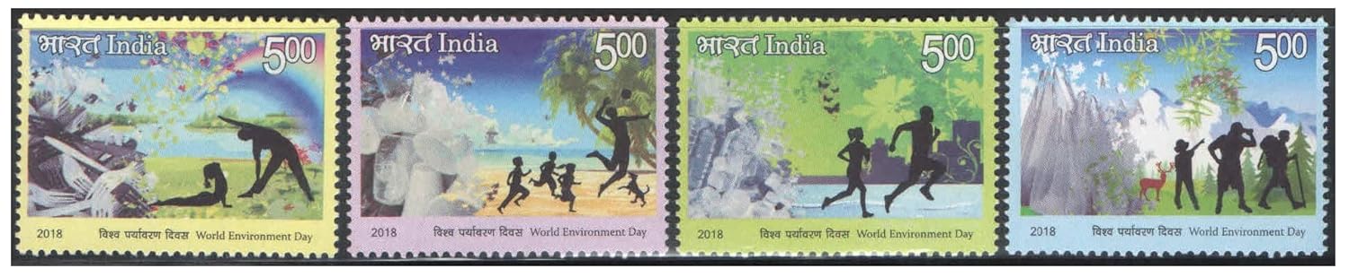 India Postage 2018 – World Environment Day ( Yoga – Games – Jogging – Hunting ) – Set of 4 Postage Stamps Mint Never Hinged