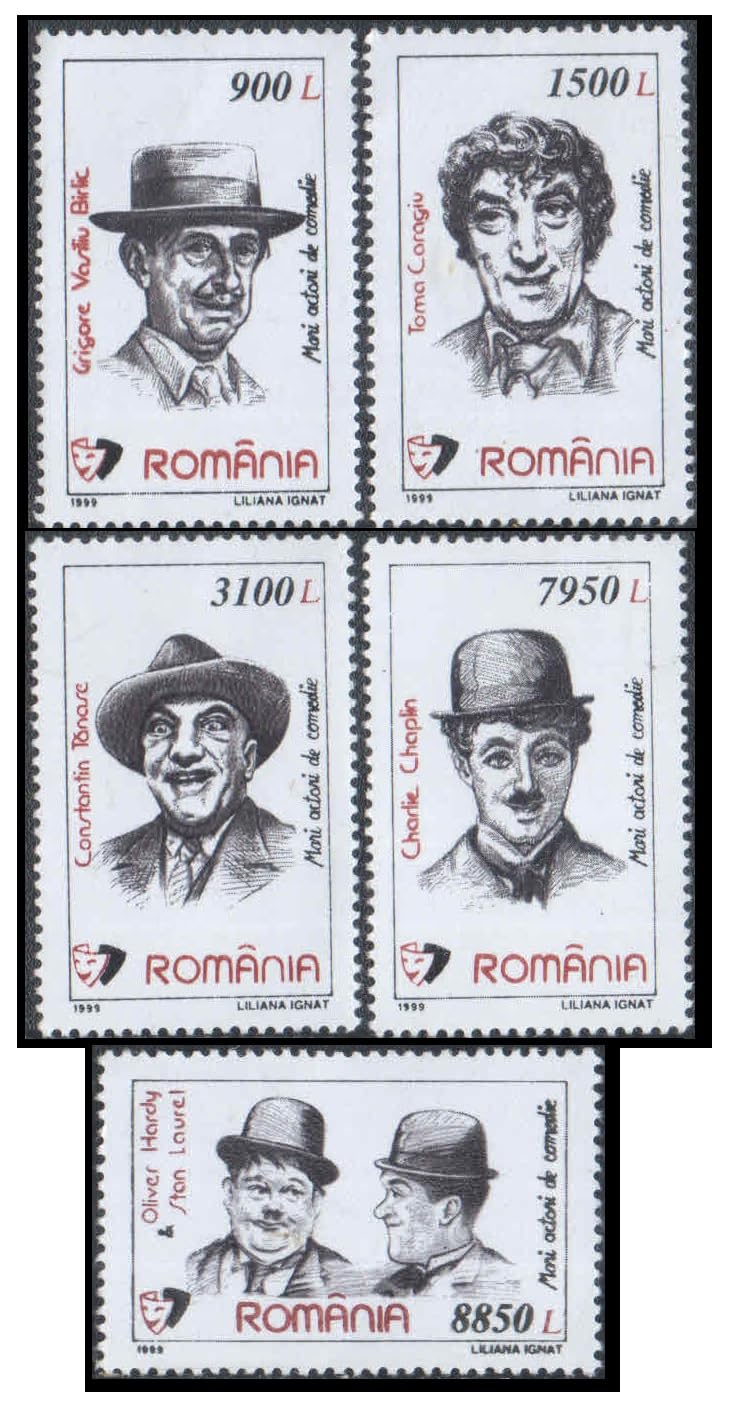 Romania 1999 Comic Actors (Comedians) – Set of 5 Postage Stamps – Mint Never Hinged