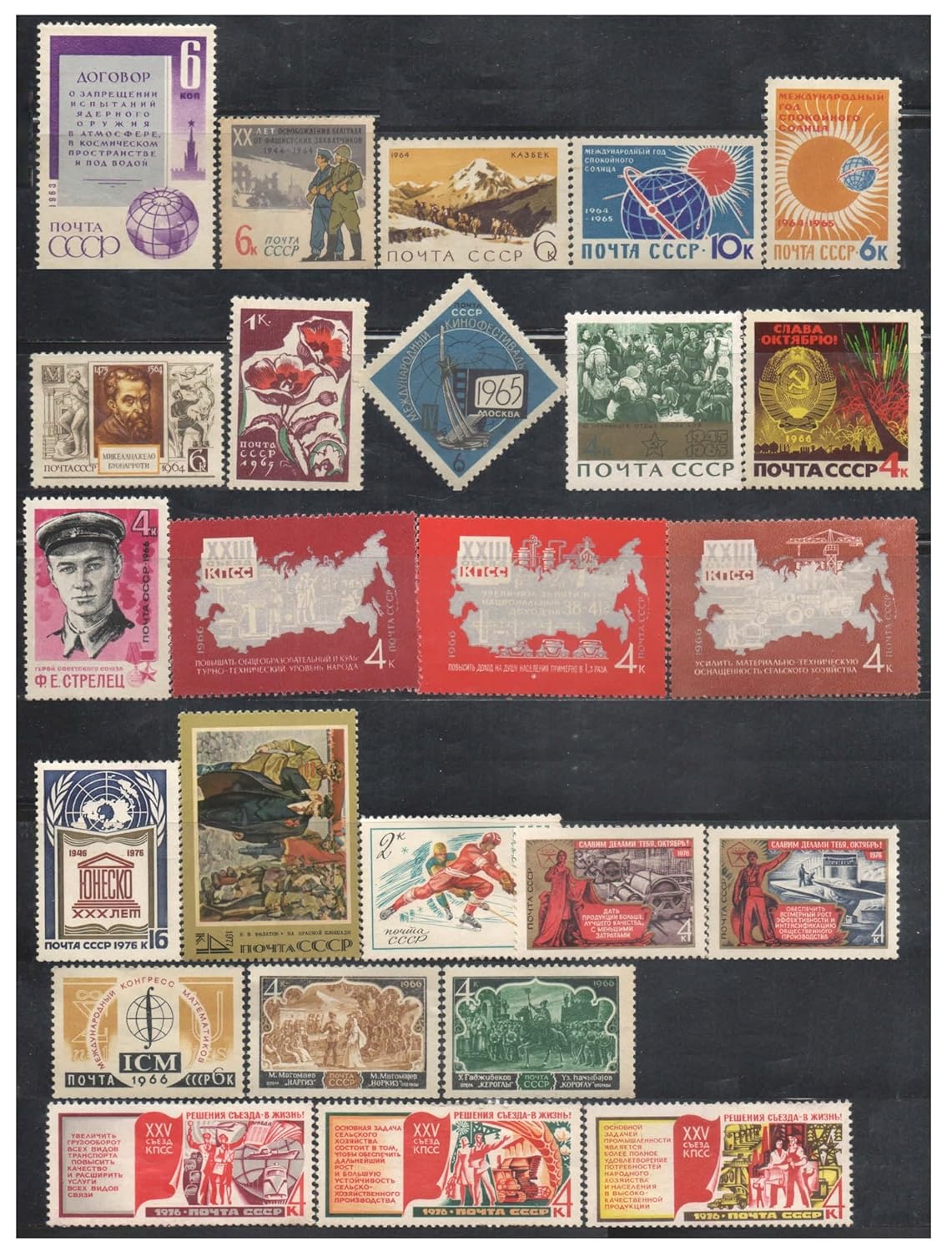 Russia 1962-1977 (USSR) Set of 25 Different Postage Stamps for Collection (Mint Gum-Stained – See Image)
