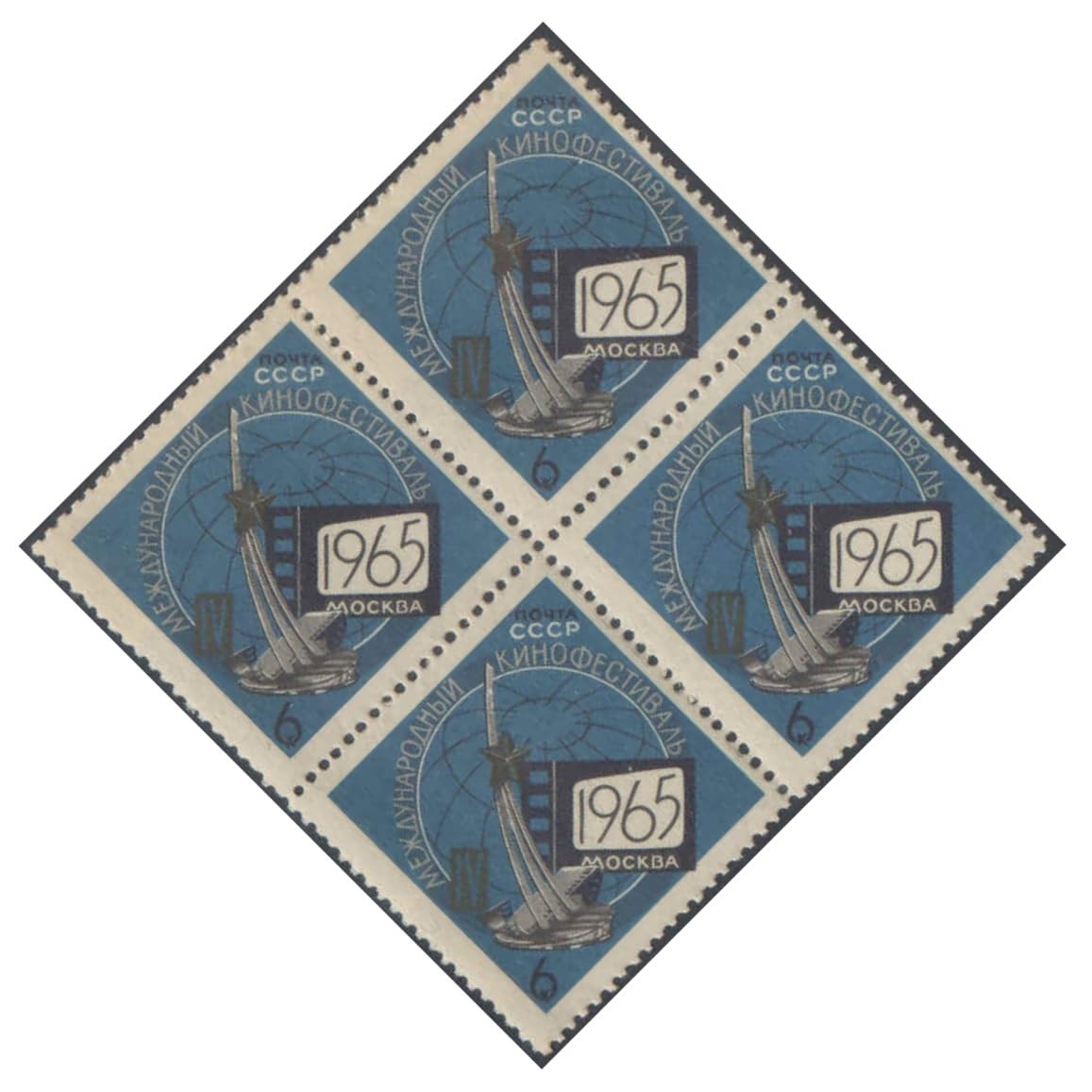 Russia 1965 (USSR) The 4th International Film Festival – Block of 4 Postage Stamps (Gum-Stained) for Collection