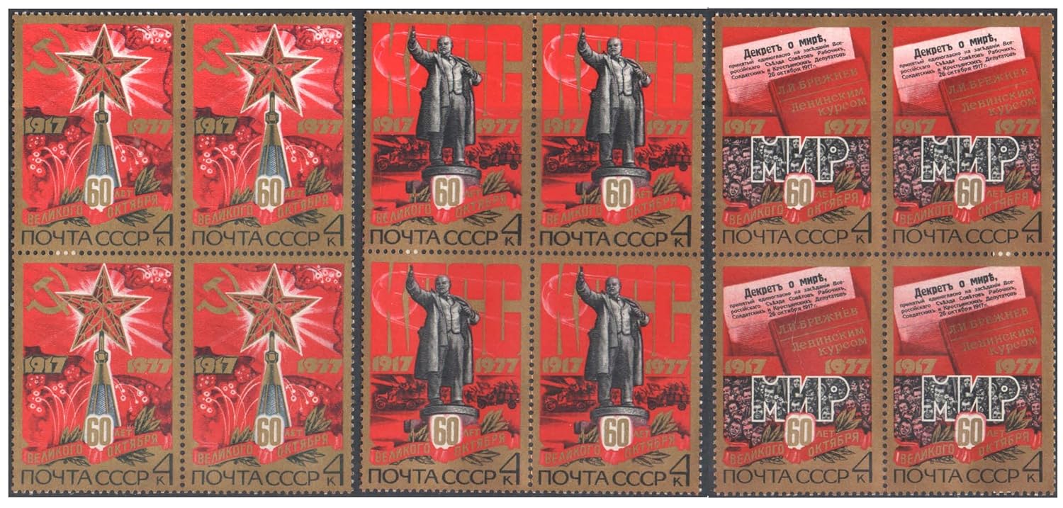 Russia 1977 (USSR-Sovet Union) – The 60th Anniversary of Great October Revolution – Set of of 3 Blocks of 4 MNH Postage Stamps Each (Total 12 Stamps) for Collection