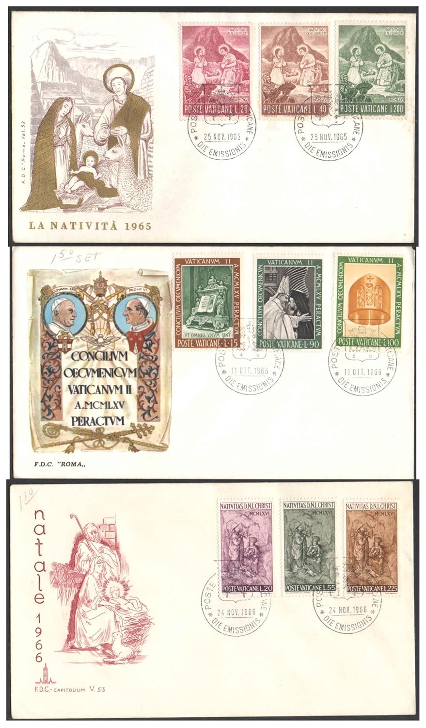Vatican City 1965-1966 Set of 3 FDCs – First Day Covers for Postal Stamp Collection