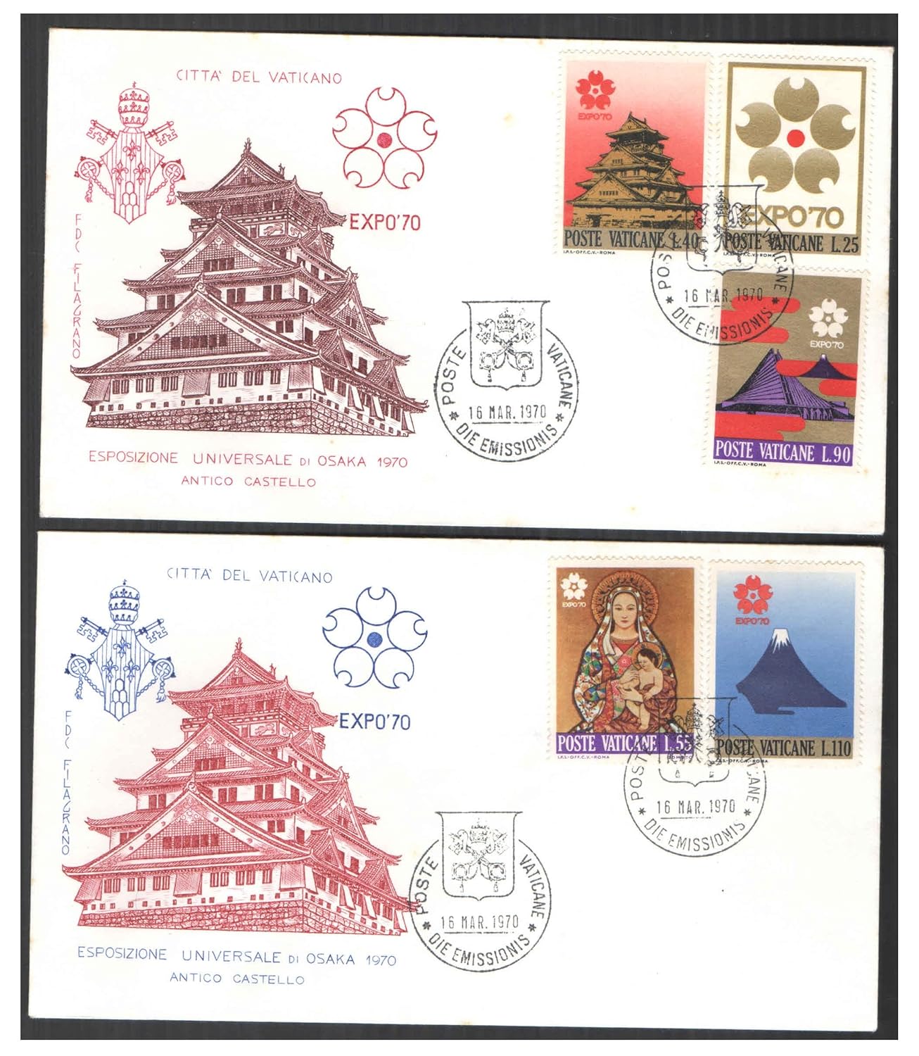 Vatican City 1970 – Expo-70 World Fair in Osaka – Set of 2 First Day Covers FDC with 2 Postage Stamps Each – for Collection