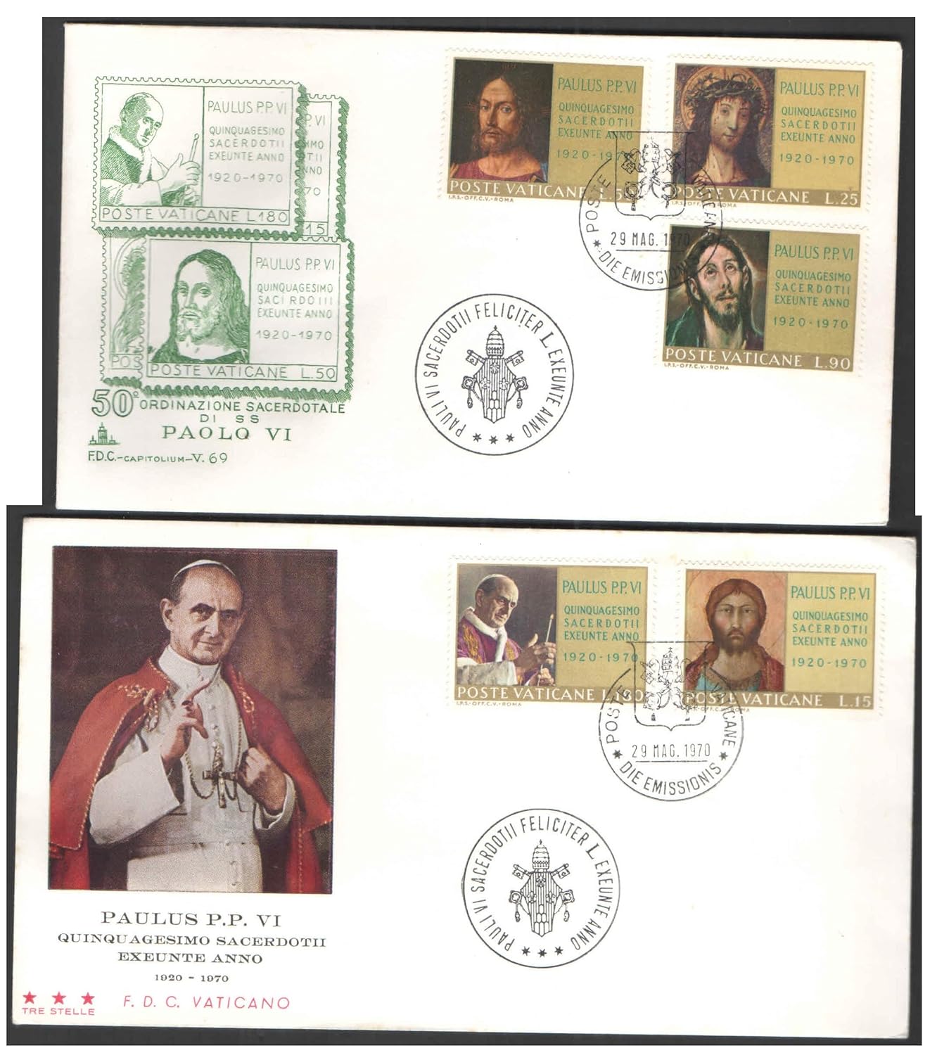 Vatican City 1970 – Pope Paulus VI- Silver Jubilee – Set of 2 First Day Covers FDC with 2+3=5 Postage Stamps – for Collection