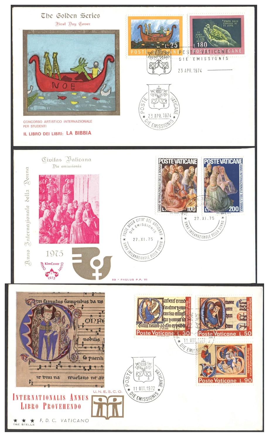 Vatican City 1972-1974 – 1975 Set of 3 FDCs – First Day Covers for Collection