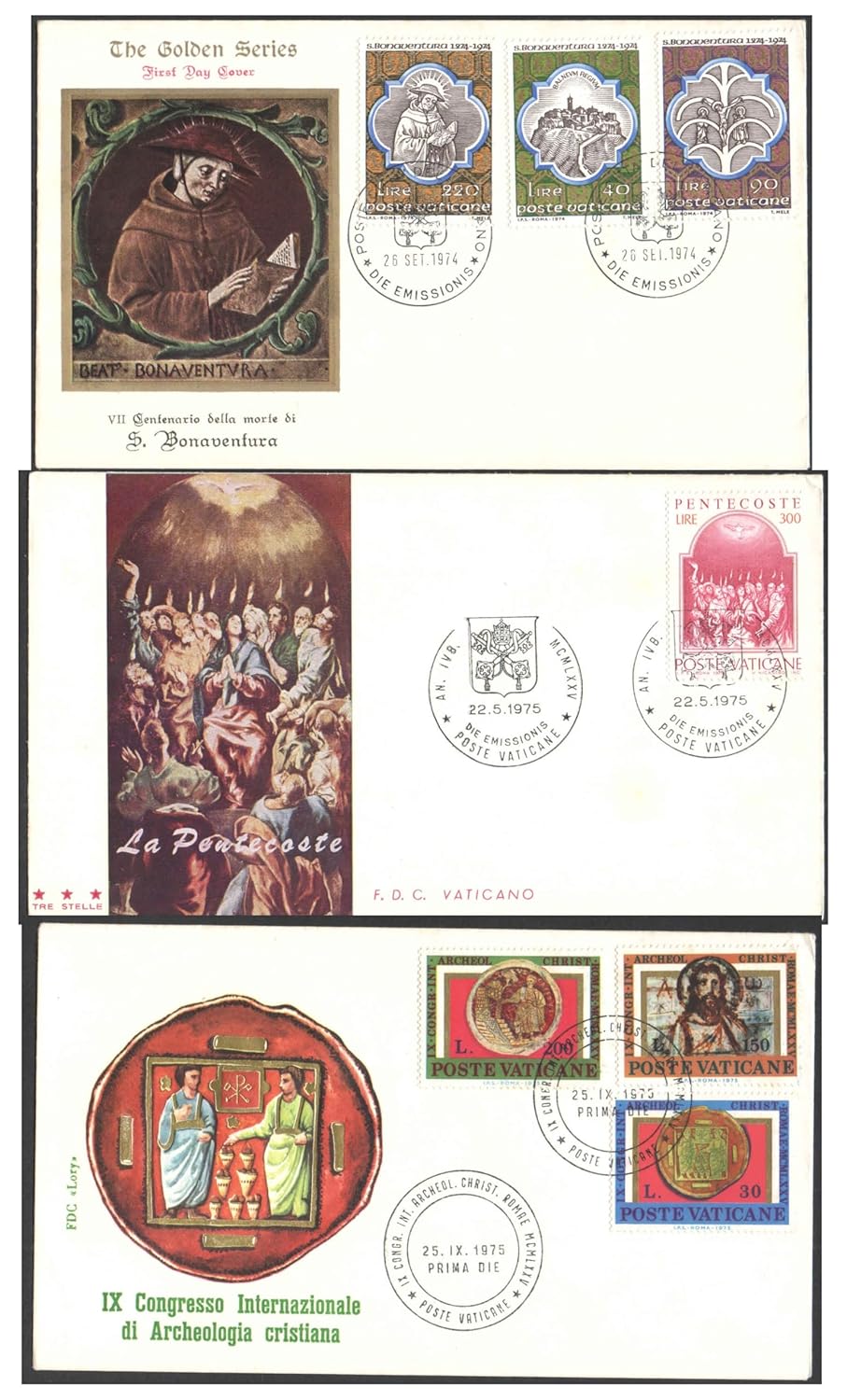 Vatican City 1974-1975 Set of 3 FDCs – First Day Covers for Collection (Set-B)